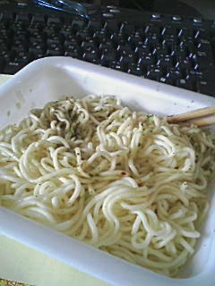 うっすらコショウがついているトコと麺の色のトコがありますが、なんたってソースが粉なんで混ざりにくいことこの上ないです。なんとかならないんだろうか、アレは・・・。