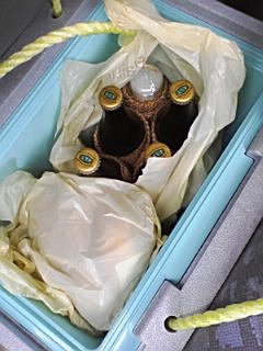 遠出のときのドリンクや非常食は保冷剤詰めて、ココにいれておけばコンビニに飛び込まなくてもよいし、経費節減。空き時間の夕餉のお買い物もできるし、少し遠くからアイスや生鮮品を買って帰ることも出来るというわけ♪