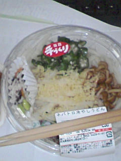 とろろにオクラになめこの冷しうどん298円をお持ち帰り。