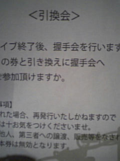 概ねアルバムはコンプリしてるけど、他県のライブを追っかけするほどの濃いファンではないし、握手したいがためにすでに持っているCDを何枚も買うほどの情熱はないし・・・(滝汗)