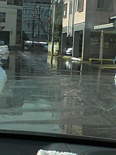 気温上昇とのダブルパンチを狙ってか、景気よく水を出している町内も。