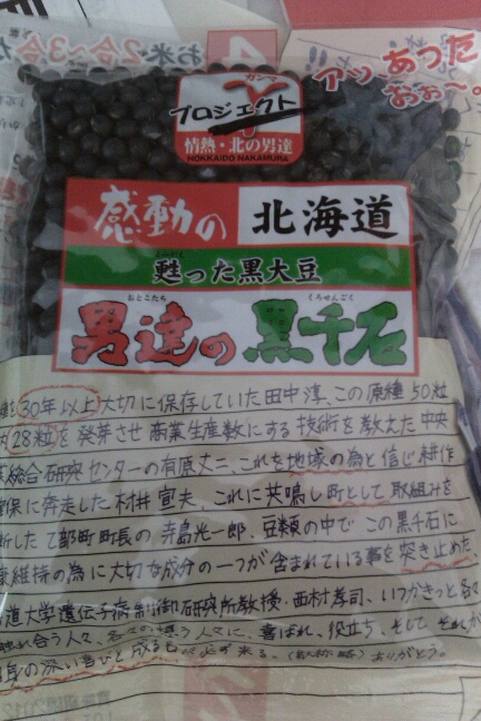 黒大豆『男達の黒千石』・・・なんとも大仰なキャッチのついた豆。