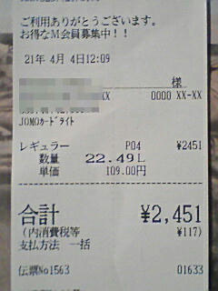 とブツブツ言いながら、給油完了してレシートを見ると。