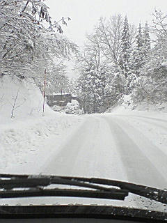 116号線では完全に雪。朝の日差しはどこへ・・・さむいよー。