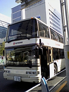 大江戸温泉前発の2階建て無料送迎バス。
