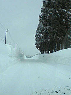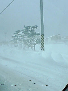 途中の田んぼ道(一応は県道)ではホワイトアウト。