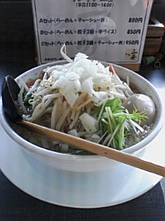 少なめに見えたけど平たいコシのある太麺はもぐもぐ食べるってかんじで、なかなかお腹にたまりました。スープはうーん・・・・自分的になにかが足りない・・・・。もやしはシャキシャキでおいしいです。煮卵はやはり