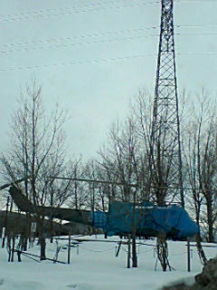 柏崎の駅前公園の自衛隊ヘリも雪囲い中。