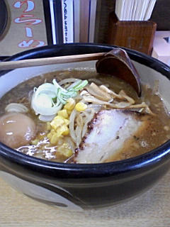 豚の背油+鰹節+いりこだしの濃~~い醤油味はこってりでした。