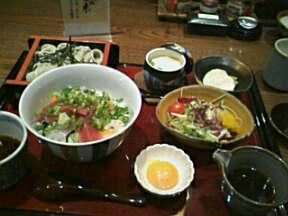 手前の卵黄と山葵と右の出汁にとき、ご飯にかけて、混ぜながらレンゲで頂くとゆー・・・なんとなくユッケっぽいですな。でもね、漁師と鶏卵って相容れないシチュと思う・・・・。美味しかったけどさ。このネーミングには首を傾げざるを得ませんナ。
