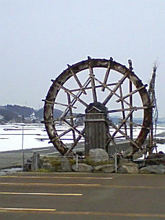 田んぼの真ん中の大きな水車が目印です。
