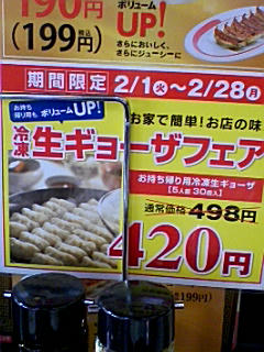 めんどくさいんで、夕食は冷凍ギョーザ買って帰っちゃう。