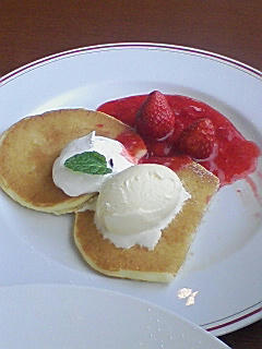 相方は苺のパンケーキ(撮る前に食ってるし・・・)