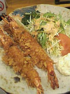 大きな海老は揚げたてあつあつ。うまーーーヽ(=´▽`=)ノ