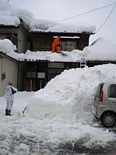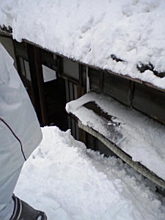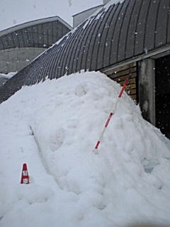 このペースで昼夜降って、日差しがまったくでない、おまけに気温も上がらないのでは、雪の重みで倒壊の危機だ・・( ̄~ ̄;) ウーン。明日は大屋根の雪下ろしかなあ。まずは頭数をそろえないとな~~。