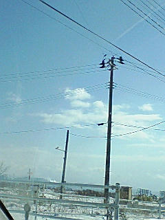 雪が止んで青空なのに、田んぼの中の横風で地吹雪。