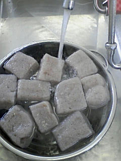 に上がったら、冷水でしばらくさらして出来上がり~~♪
